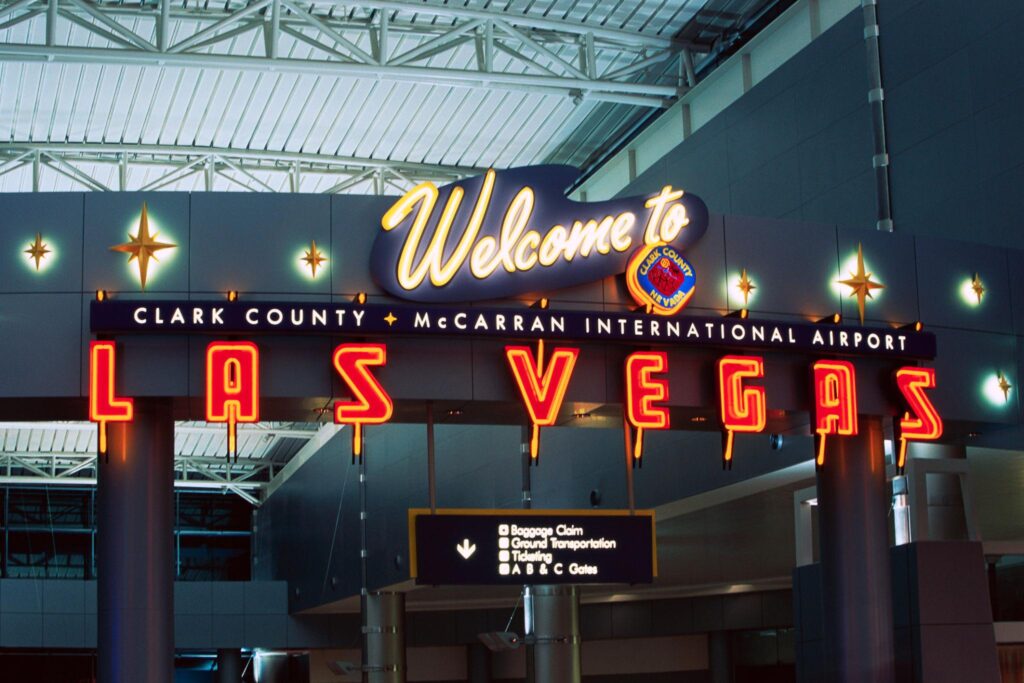 At Harry Reid International Airport, slot machines sit directly inside the terminal. You land — and Vegas begins immediately. No transition period. The city’s identity is consistent from runway to resort.