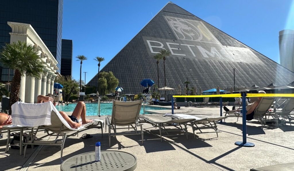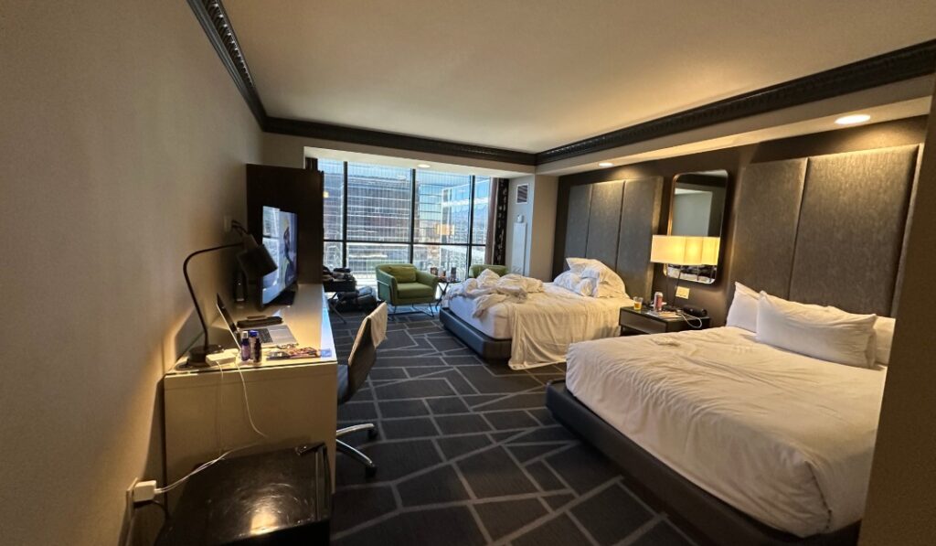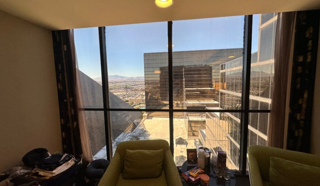 We stayed at Luxor Hotel & Casino and paid about $15 extra for a tower room upgrade — completely worth it.